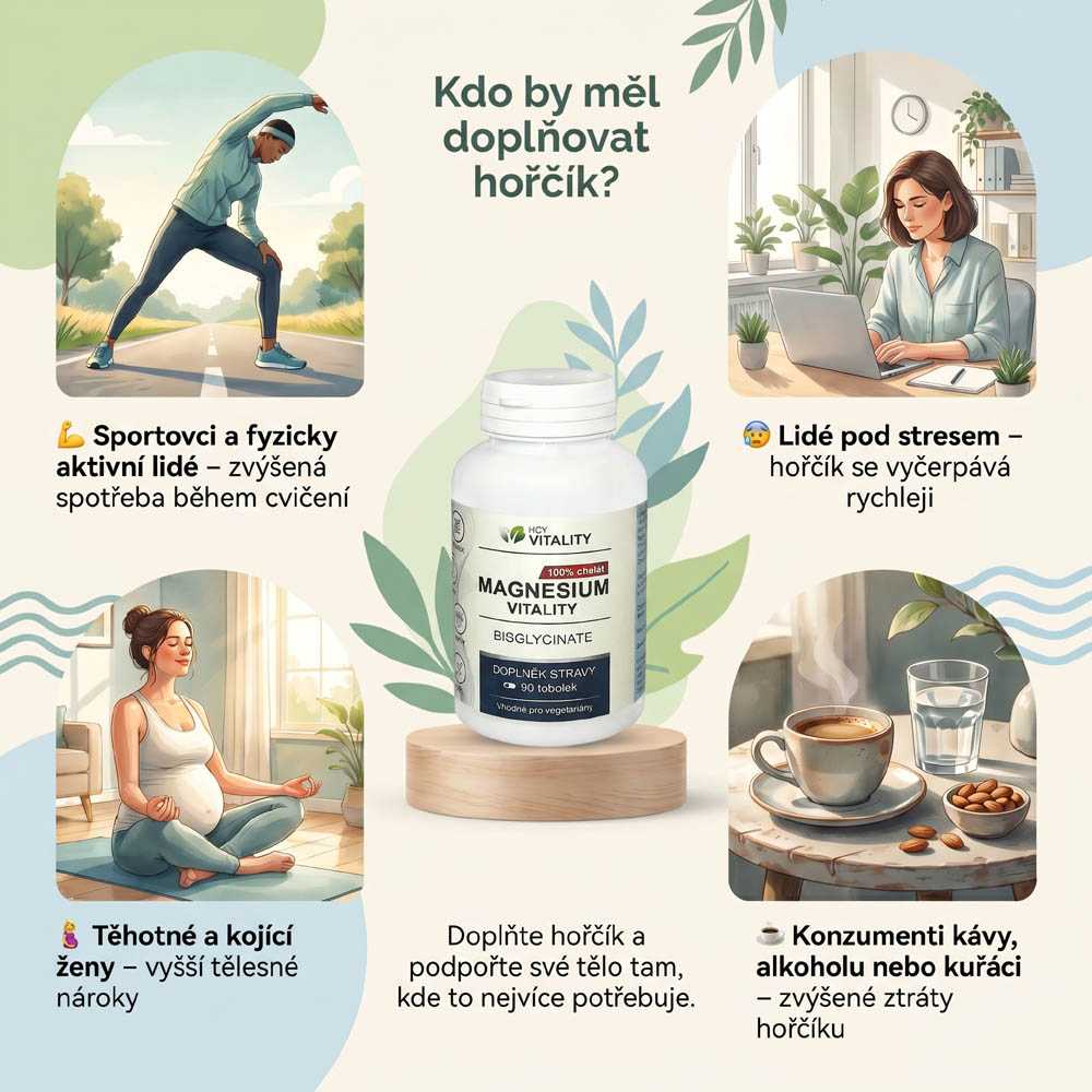 Magnesium Vitality je doplněk stravy s hořčíkem ve formě chelátu.